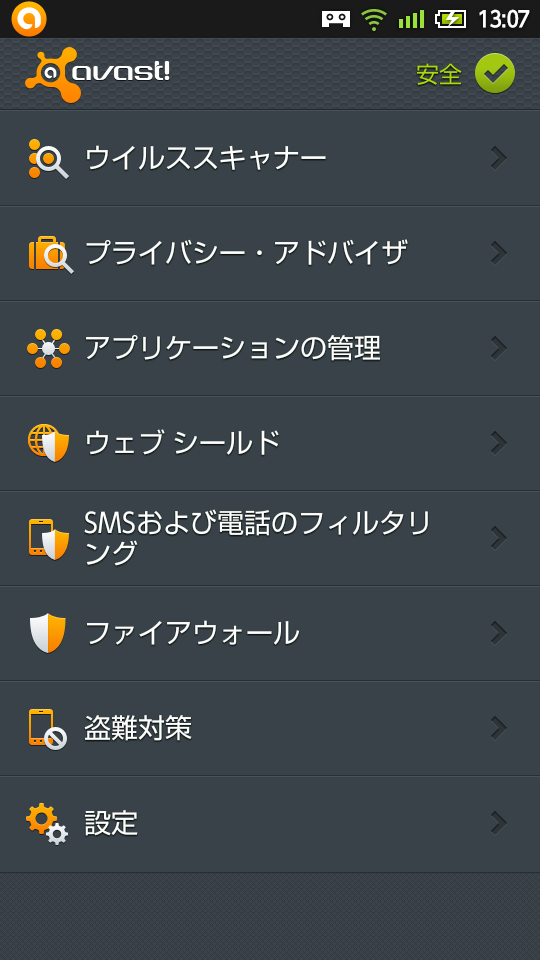 avast!のAndroid版アプリのスクリーンショットを載せてみました。